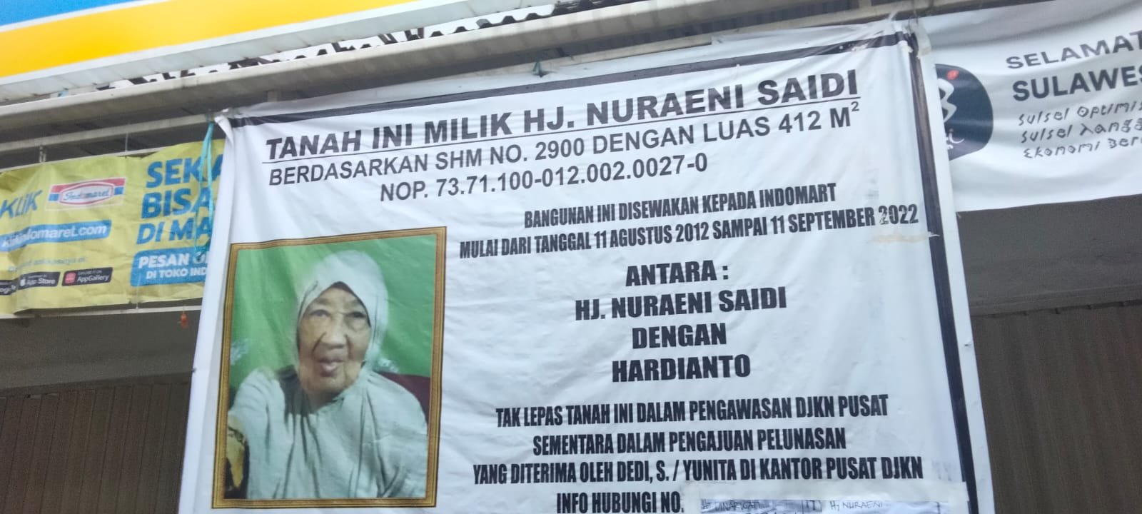 Sewa menyewa selanjutnya tidak lagi melalui Hj. Nuraini tapi Indomaret melakukan tanda tangan kontrak dengan pihak Dirjen Kekayaan Negara (DJKN) Sulsel. Sehingga pihak Nuraini menilai kontrak tersebut melanggar hukum dan sebagai penyerobotan haknya.