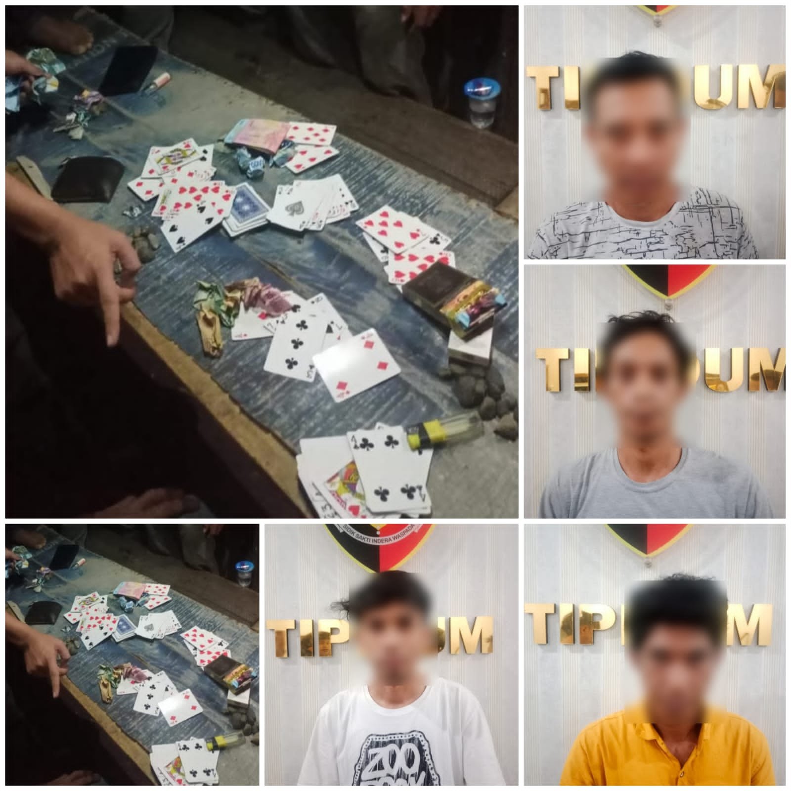 Selain mengamankan pelaku, para petugas juga ikut mengamankan barang bukti berupa uang tunai sebesar Rp 1.018.000,- (satu juta delapan belas ribu rupiah), 2 (dua) set kartu joker, 40 (empat puluh) buah batu kerikil, 2 (dua) unit HP yang digunakan sebagai penerang.