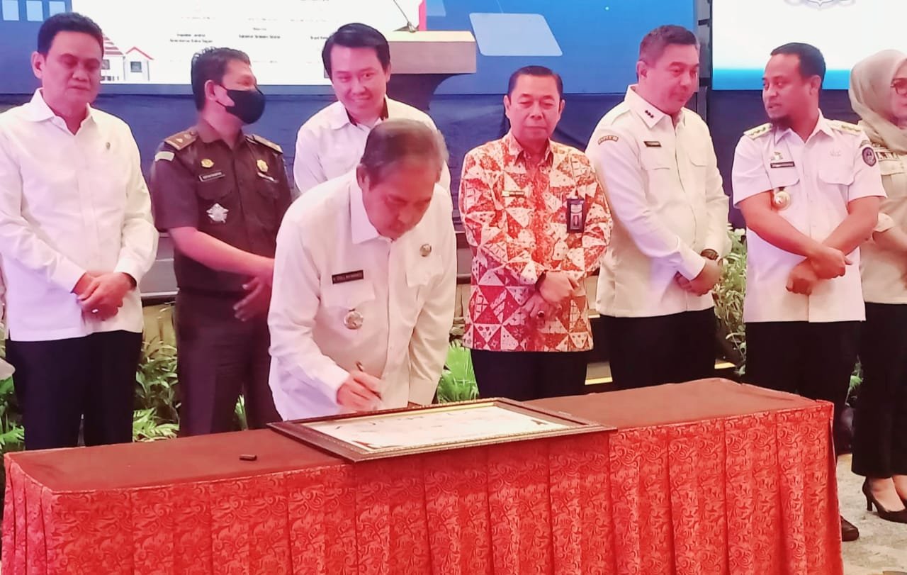 Dollah Mando bersama seluruh Kepala Daerah se-Sulsel pada kesempatan itu menandatangani komitmen bersama pemberantasan korupsi dan dukungan kepada APIP (Aparat Pengawasan Intern Pemerintah).