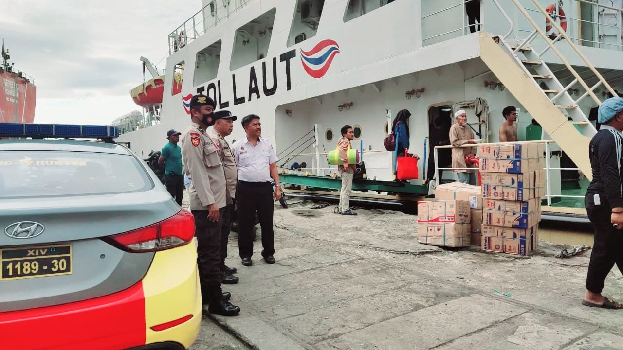 Untuk mencegah terjadinya tindak kejahatan dan gangguan kamtibmas menjelang Nataru 2022, Polsek Kawasan Soeta Polres Pelabuhan Makassar melakukan pengamanan dan pemantauan kapal di Dermaga Pelabuhan Makassar