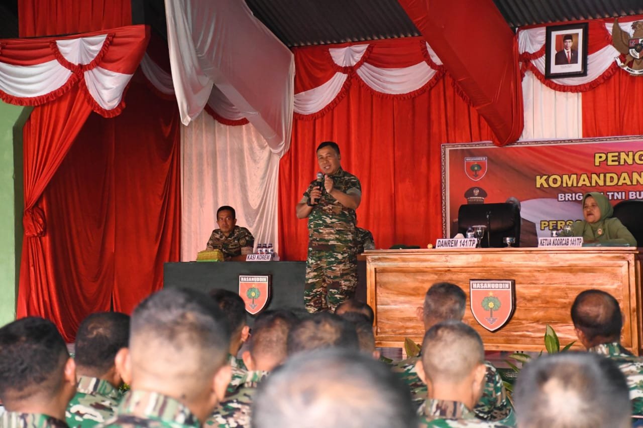 Danrem 141/Tp menekankan, setiap Prajurit harus memahami serta mengimplementasikan slogan Pangdam XIV/Hasanuddin terkait 6K yaitu Karakter, Kapabel, Kontemporer, Kompak, Kesemestaan, dan Kerakyatan.