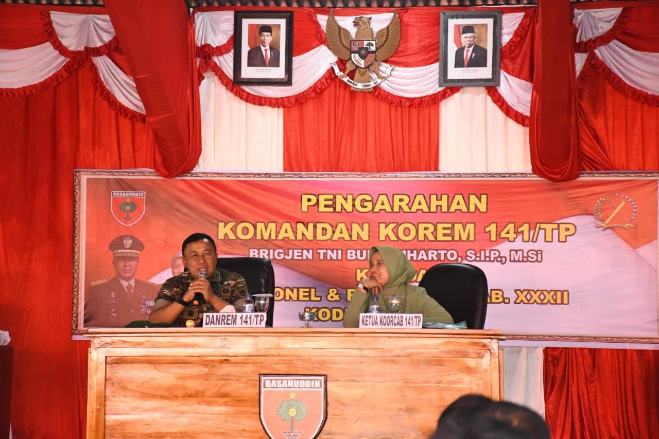 Komandan Korem (Danrem) 141/Toddopuli, Brigjen TNI Budi Suharto bersama Ketua KCK Koorcab Rem 141/Tp, Lina Budi Suharto melakukan kunjungan kerja di Markas Kodim 1424 Sinjai, Kamis (15/12/2022).