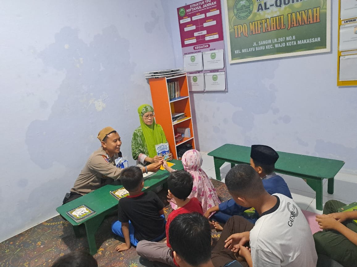 menjalankan program Polri menjadikan Polisi Sahabat Anak dengan menanamkan kecintaan anak–anak terhadap Polisi serta menghidupkan syiar Islam di wilayah binaannya sekaligus menumbuhkan kecintaan anak-anak terhadap Al-Qur'an," jelas Kasubsipenmas Sihumas Polres Pelabuhan Makassar. (*)