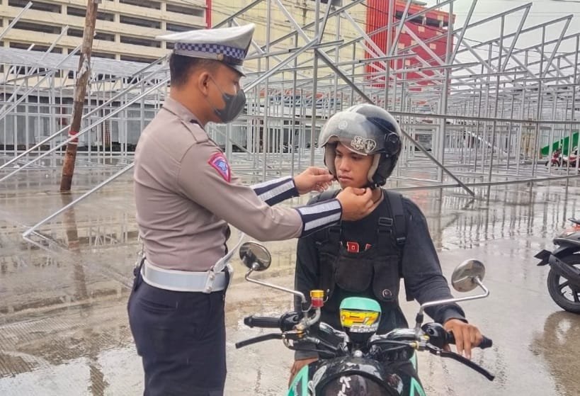 pengendara kendaraan bermotor agar selalu menerapkan keselamatan berlalulintas, Senin (06/02/2023).