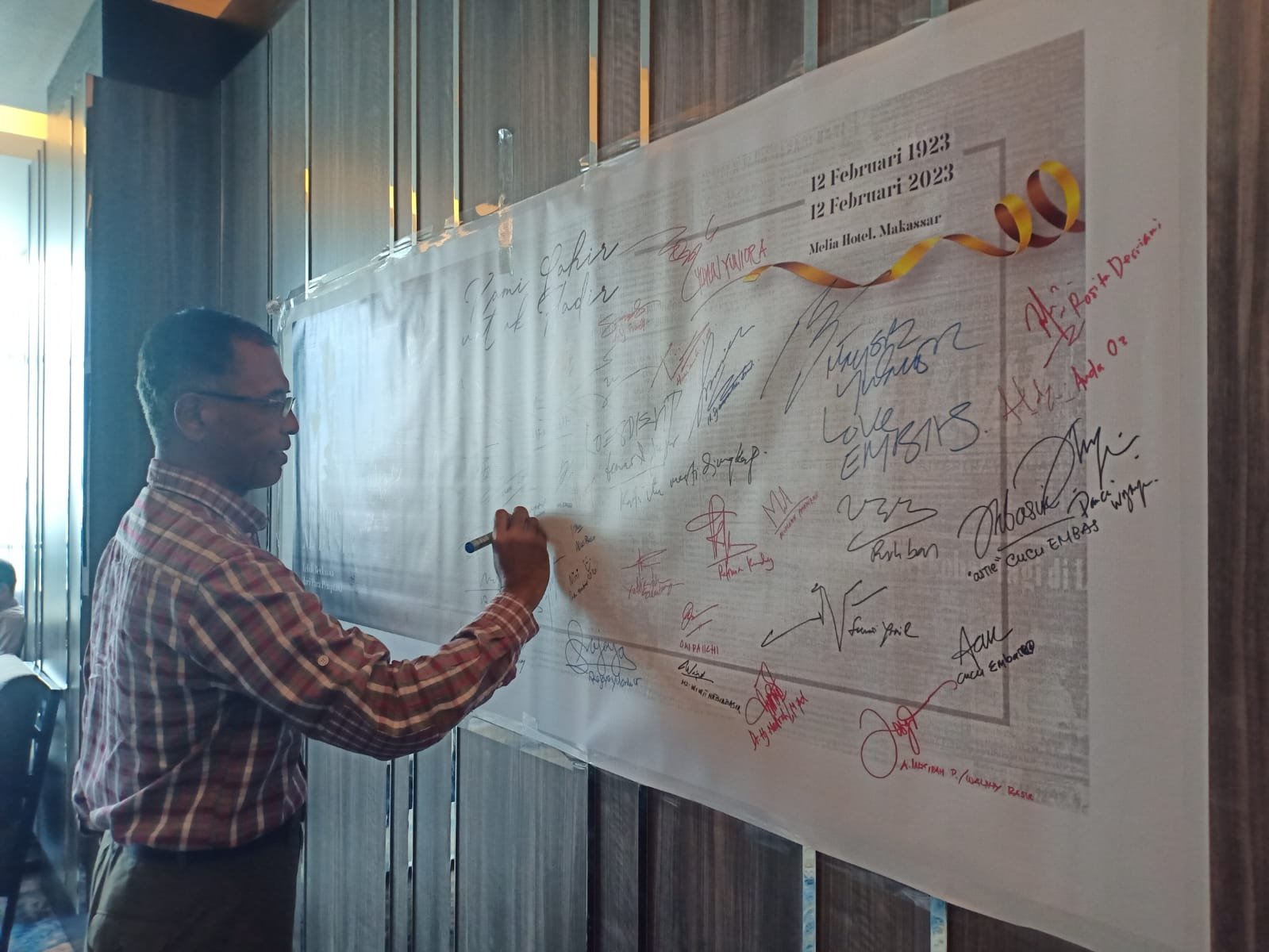 Kepala Pembinaan Mental dan Sejarah Kodam (Kabintaljarahdam) XIV/Hasanuddin Kolonel Cpl Ir. Tommy Mukti Widyastomo menghadiri Peluncuran dan Diskusi Buku 100 Tahun M. Basir "Lebih Berkuasa Dari Para Penguasa" bertempat di Mallorca Room lantai 7 Melia Hotel Jalan Andi Mappanyukki, Kecamatan Mariso, Kota Makassar, Minggu (12/02/2023).