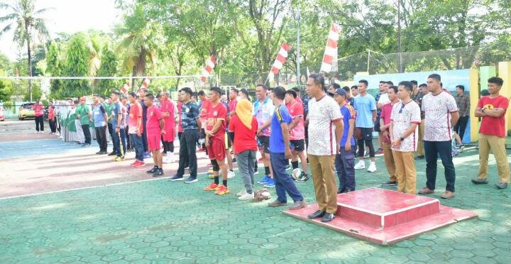Penjabat Sekretaris Daerah Sinjai Andi Jefrianto Asapa mewakili Bupati Andi Seto Asapa (ASA) membuka turnamen bola volly di Halaman Kantor Kementerian Agama (Kemenag) Sinjai, Selasa (14/02/2023).