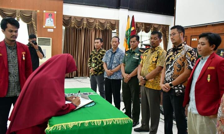Bupati Sinjai Andi Seto Asapa (ASA) bersama Ketua DPRD Sinjai Jamaluddin, serta para perwakilan Forkopimda Sinjai menyaksikan prosesi pelantikan pengurus PC Ikatan Mahasiswa Muhammadiyah (IMM) Sinjai di Ruang Pola Kantor Bupati Sinjai, Sabtu (18/02/2023).
