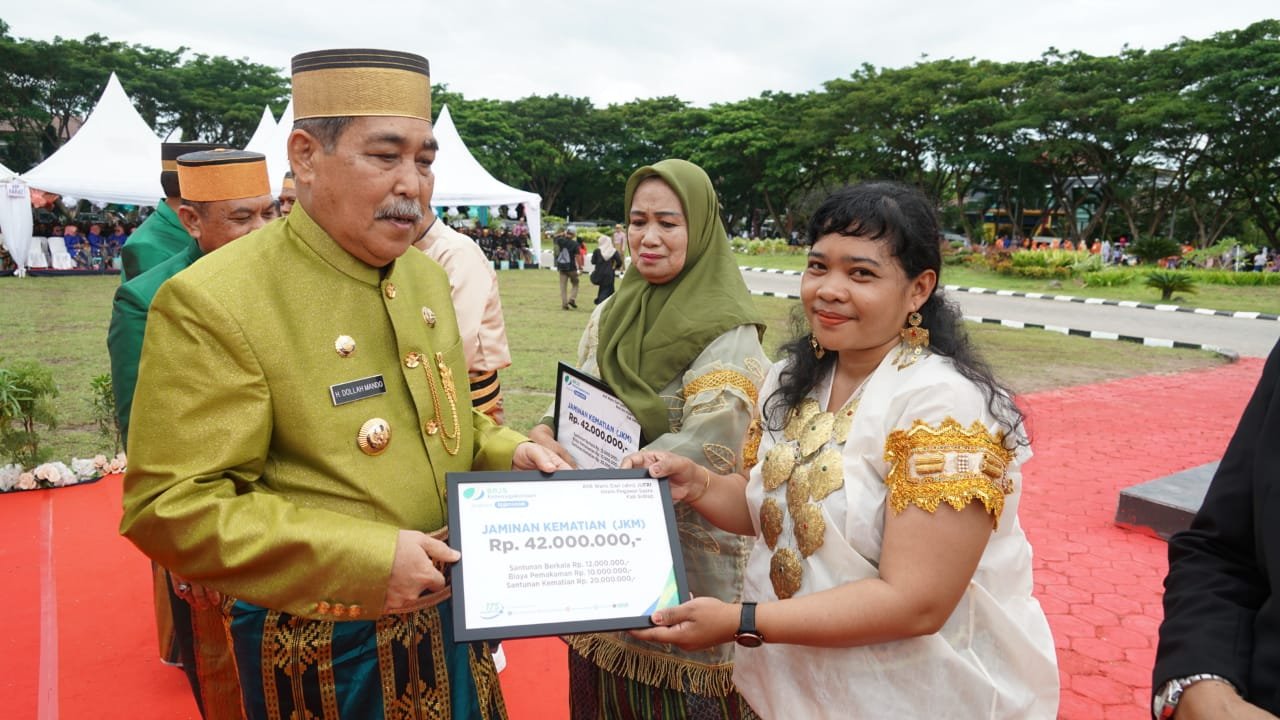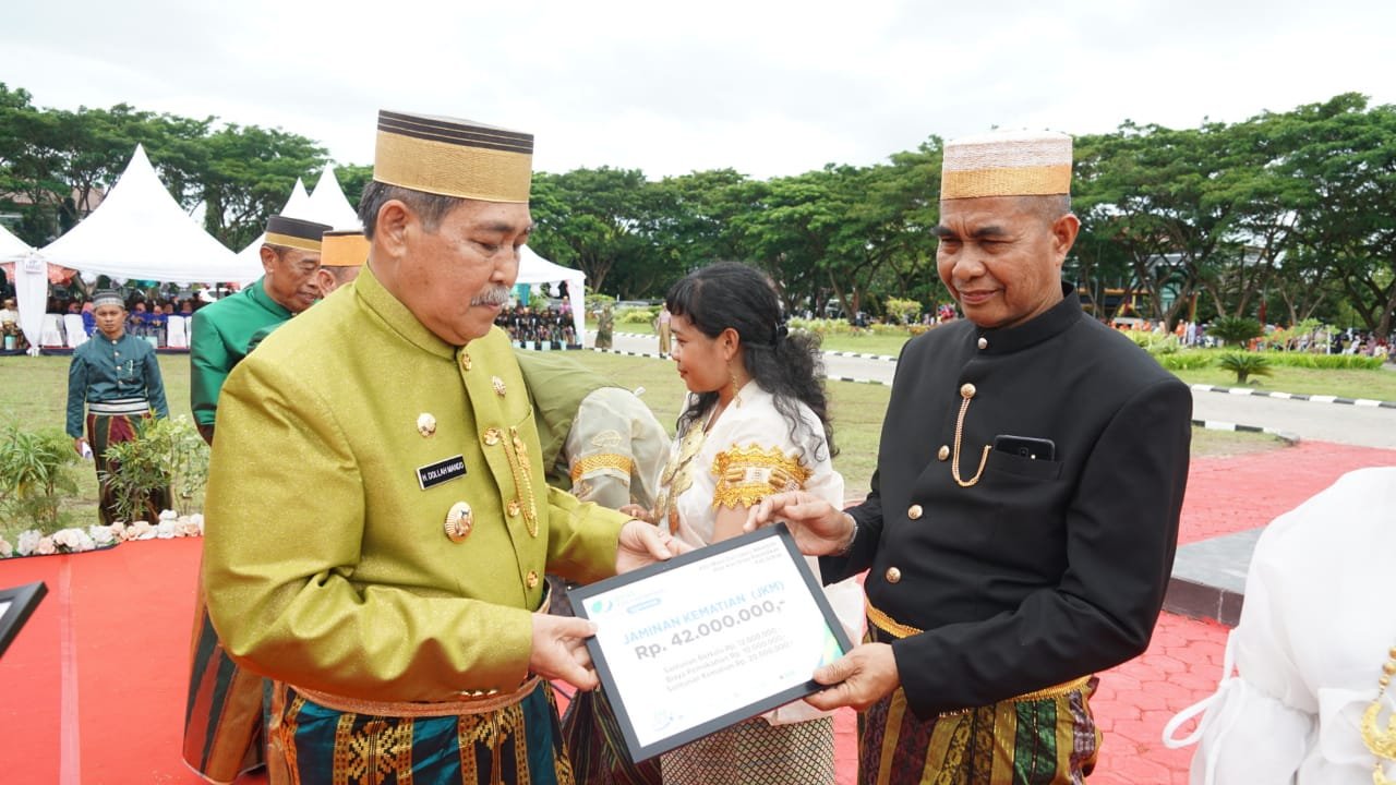 Sebanyak enam ahli waris peserta Badan Penyelenggara Jaminan Sosial Ketenagakerjaan (BPJamsostek) menerima santunan di puncak peringatan Hari Jadi ke-679 Sidenreng Rappang, di lapangan Kompleks SKPD Sidrap, Sabtu 18 Februari 2023 lalu.