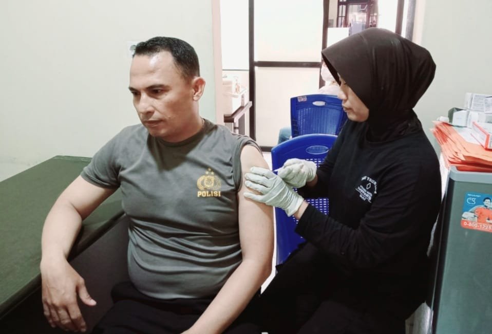 "Pemberian vaksinasi Covid-19 dosis booster kedua tersebut diberikan dengan interval 6 bulan sejak vaksinasi dosis booster pertama," terang Kasi Humas AKP Mirwan Herlambang.