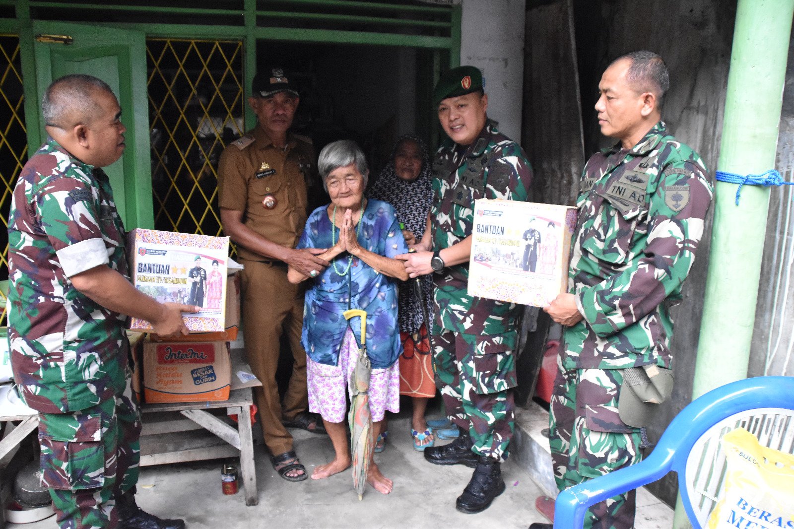 Dandim 1408/Makassar Kolonel Inf Nurman Syahreda, SE menyerahkan bantuan berupa sembako kepada perempuan lansia Ibu Jonio Sang (82), beralamat di Jalan Pelita Raya, Kelurahan Buakana, Kecamatan Rappocini Kota Makassar, Senin (27/02/2023).