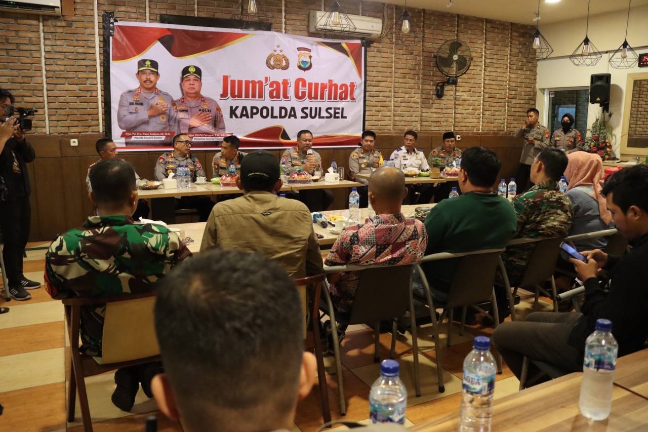 Dalam kegiatan Jumat Curhat, dihadiri Dirbinmas Polda Sulsel Kombes Pol. Andi Heru Santo, Dir Pamobvit Polda Sulsel Kombes Pol. M. Iftah Falahafin, Dir Pamobvit Polda Sulsel Kombes Pol. M. Iftah Falahafin, Dir Polairud Polda Sulsel Kombes Pol Supeno, Kapolres AKBP Yudi Firyanto dan para PJU Polres Pelabuhan Makassar.