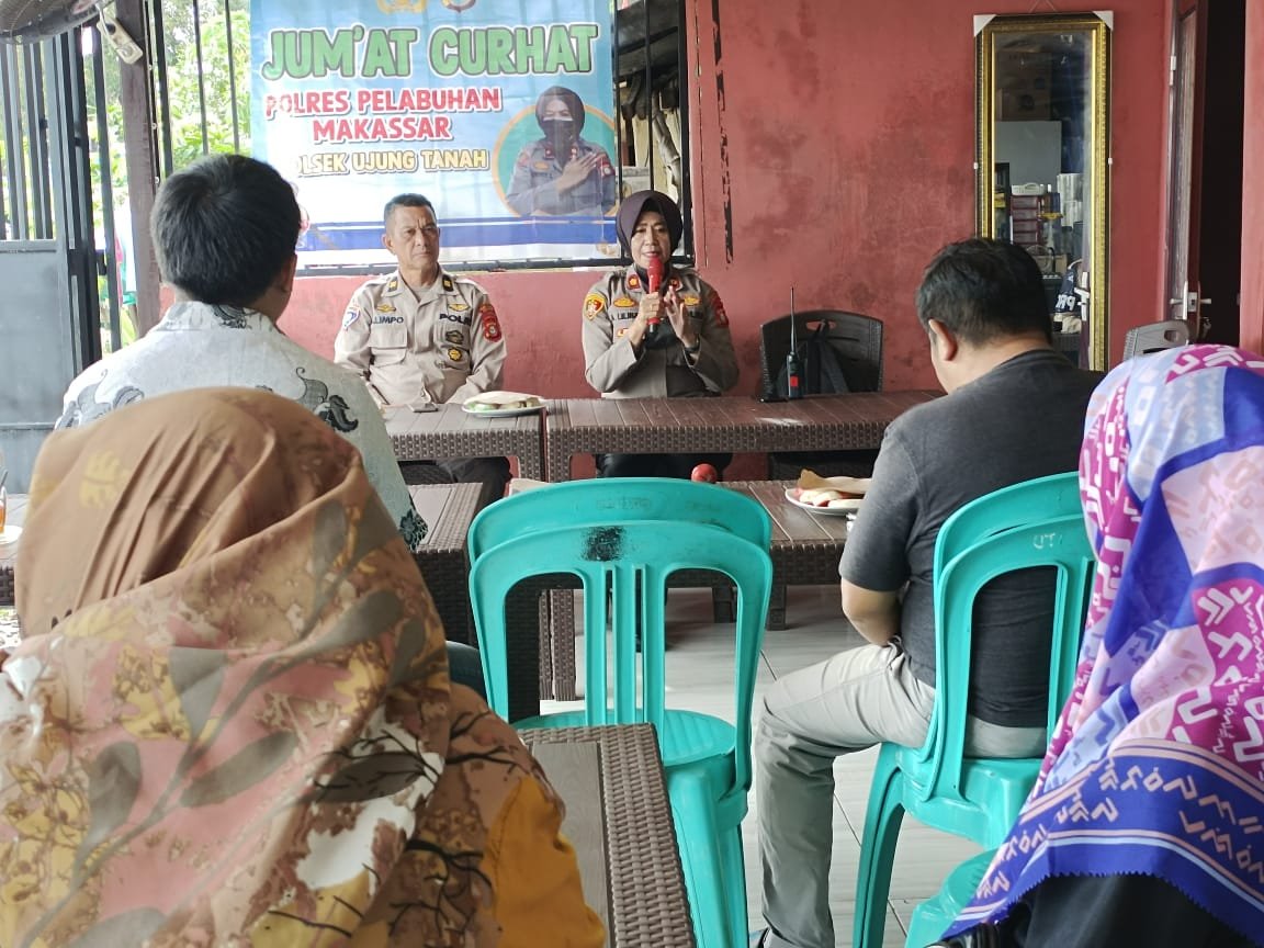 Lewat kegiatan Jumat Curhat, Kapolsek Ujung Tanah Kompol Andriyani Lilikay melakukan tatap muka guna mendengarkan keluhan dan aspirasi warga secara langsung di Kelurahan Gusung, Kota Makassar, Jumat (03/03/2023).