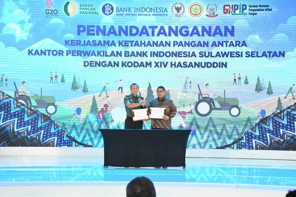 Pangdam XIV/Hasanuddin Mayjen TNI Dr. Totok Imam Santoso, SIP, S.Sos, M.Tr.(Han) menuturkan, pada Triwulan I TA 2023 Kodam XIV/Hasanuddin telah melaksanakan kerjasama dengan Perwakilan Bank Indonesia (BI) Sulsel terkait Program Pengendalian Inflasi Pangan yang dilaksanakan pada acara Kick Off Gerakan Nasional Pengendalian Inflasi Pangan (GNPIP) Sulawesi Selatan, di Taman Muccini Kota Makassar, Senin (24/10/2022) lalu.