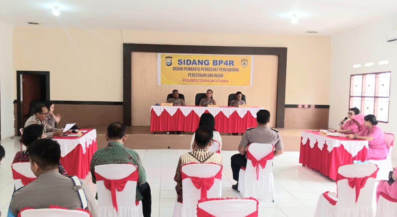 Bertindak sebagai pimpinan sidang BP4-R Wakapolres Toraja Utara Kompol Marthen Buttu dengan didampingi Kabag Sumda Kompol Elyazar L. Kiding, Kasi Propam Ipda Mansyur, selaku Rohaniawan Kasiwas Iptu Agus Martopo, serta para pengurus Bhayangkari yang dipimpin oleh Wakil Ketua Bhayangkari Cabang Toraja Utara Ny. Meti Marthen Buttu. (etan/pria)