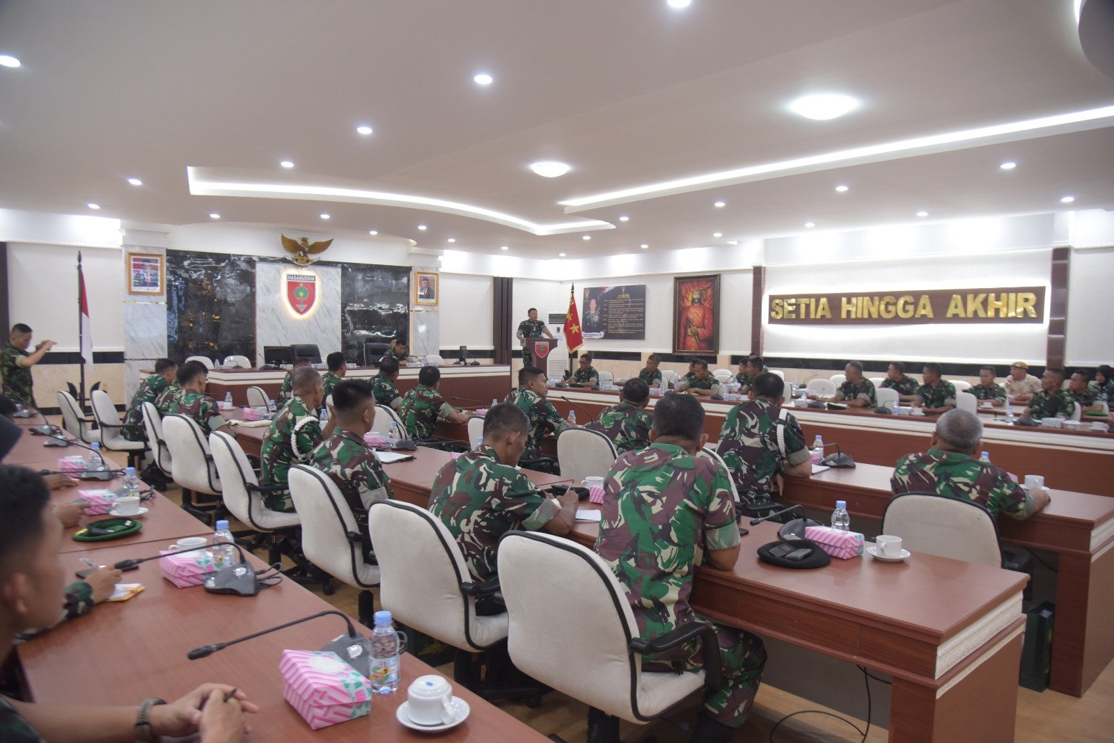 Kodam XIV/Hasanuddin menggelar sosialisasi program Bakti TNI TA 2023 melalui tatap muka dengan pejabat Teritorial Balakdam yang berada di wilayah Kota Makassar dan melalui video conference (vicon) dengan pejabat Teritorial yang berada di wilayah jajaran Kodam XIV/Hasanuddin, Senin (13/03/2023).