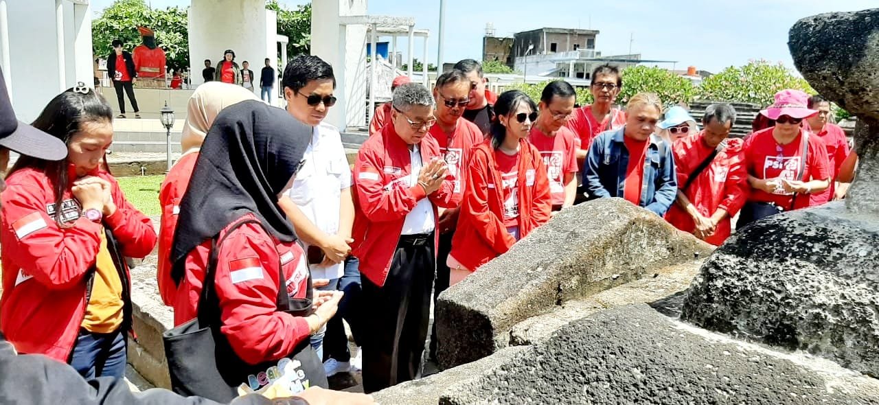 Usai mengikuti kegiatan 'Coffee Morning Bersama DPD PSI Kota Makassar', rombongan pengurus, kader dan simpatisan partai yang mengenakan seragam kostum merah berlogo PSI ini melanjutkan kegiatan dengan melakukan kunjungan ziarah ke Makam Pahlawan Nasional, Sultan Hasanuddin dan Sjekh Jusuf yang lokasinya di Kelurahan Katangka, Kecamatan Sombaopu, Kabupaten Gowa.