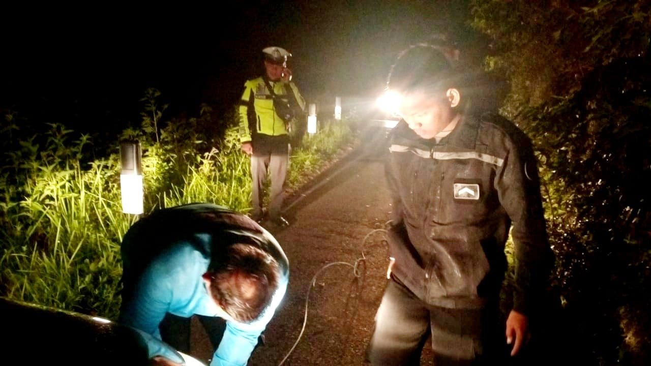 Saat tiba di lokasi, petugas bersama dengan masyarakat setempat kemudian membantu melakukkan evakuasi terhadap kendaraan mini bus tersebut yang diketahui bernomor polisi DD 1873 ML warna putih yang mana saat itu dalam keadaan nyaris terperosok ke dalam jurang.
