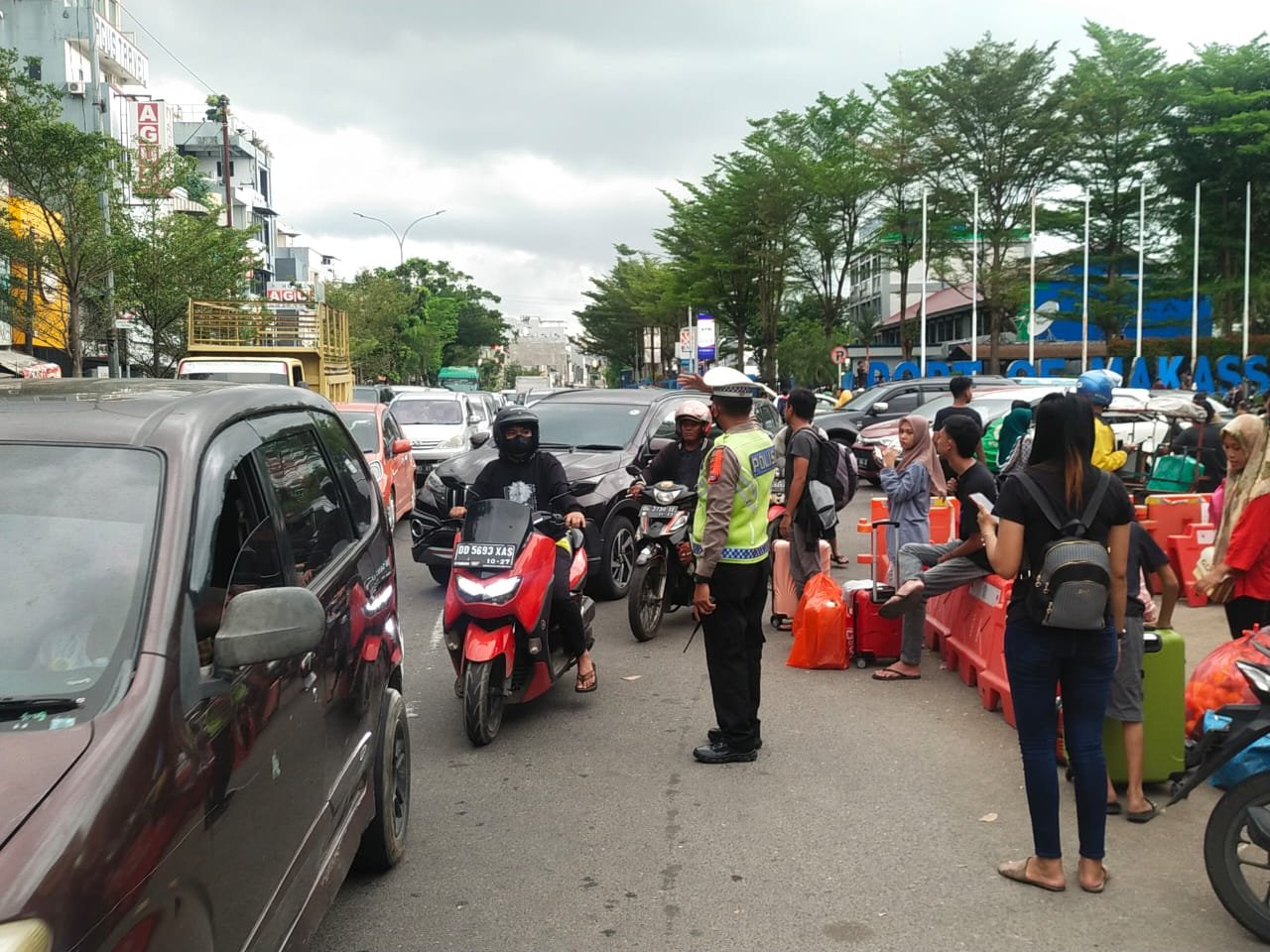 "Seperti yang dilakukan personel Satlantas Polres Pelabuhan Makassar melaksanakan pengaturan lalu lintas di depan pintu II Pelabuhan Makassar," ucap Kasi Humas Iptu Hasrul, Kamis (27/04/2023).