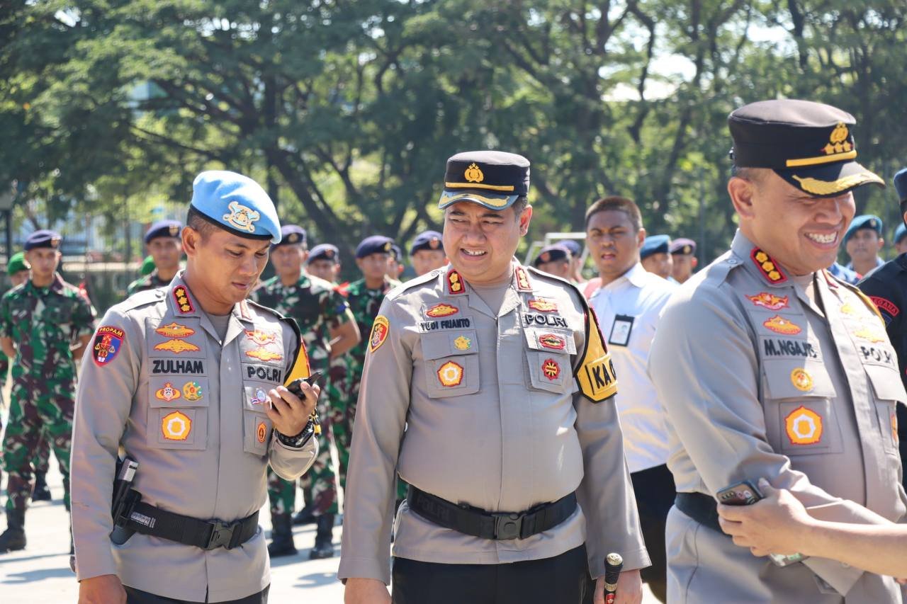 Kapolres Pelabuhan Makassar AKBP Yudi Frianto mengikuti apel gelar pasukan Ops Mantap Brata tanda dimulainya tahapan pendaftaran Caleg di Lapangan Karebosi, jalan Ahmad Yani, Selasa (17/10/2023).