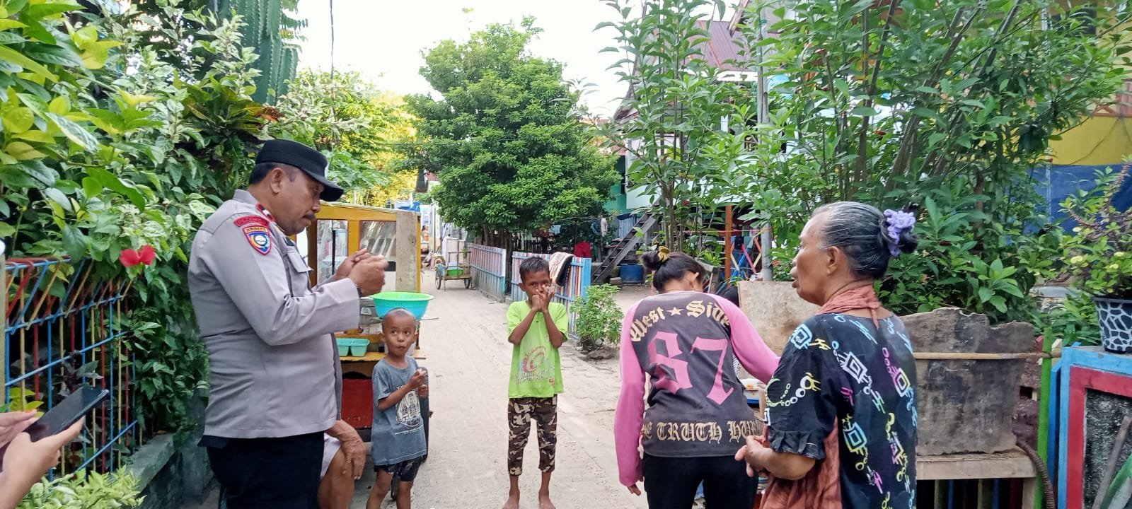 Bhabinkamtibmas Pulau Barrang Caddi Aipda Musbahiddin menyambangi warganya dan mengajak serta mengingatkan untuk selalu menjaga Kamtibmas, Kamis (19/10/2023).