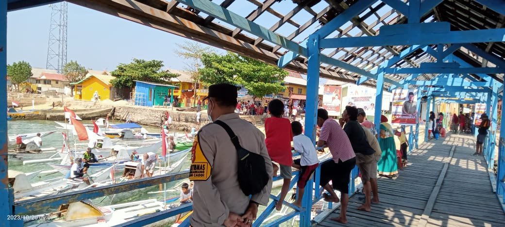Polres Pelabuhan Makassar melaksanakan monitoring kegiatan deklarasi relawan aliansi capres Prabowo di Kelurahan Pulau Barrang Caddi, Jumat (20/10/2023).