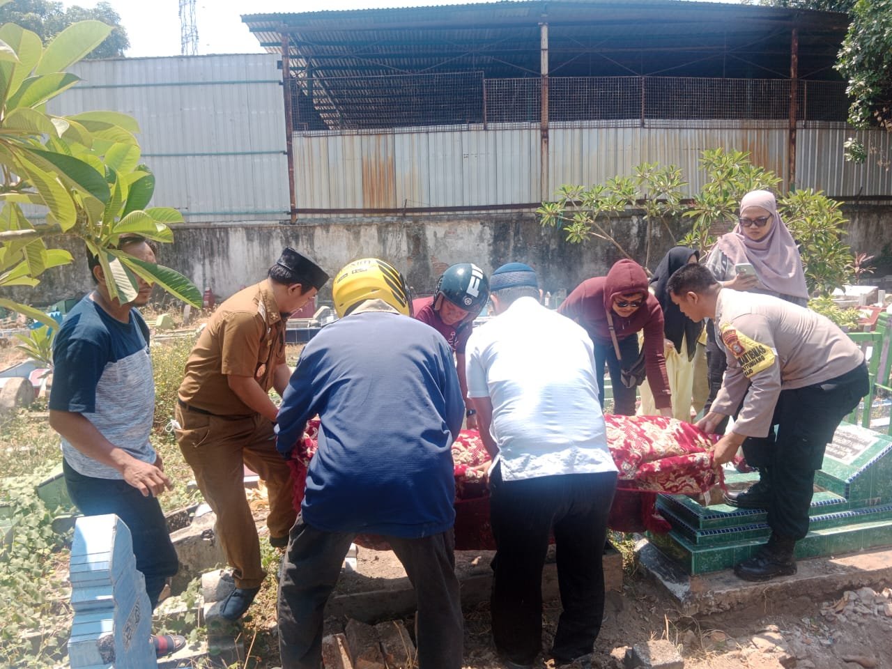 Salah satu bentuk rasa empati terhadap seorang warga yang meninggal dunia, Bhabinkamtibmas Pattunuang Aipda Basri ikut prosesi pemakaman warga binaannya yang meninggal dunia, Selasa (24/10/2023).