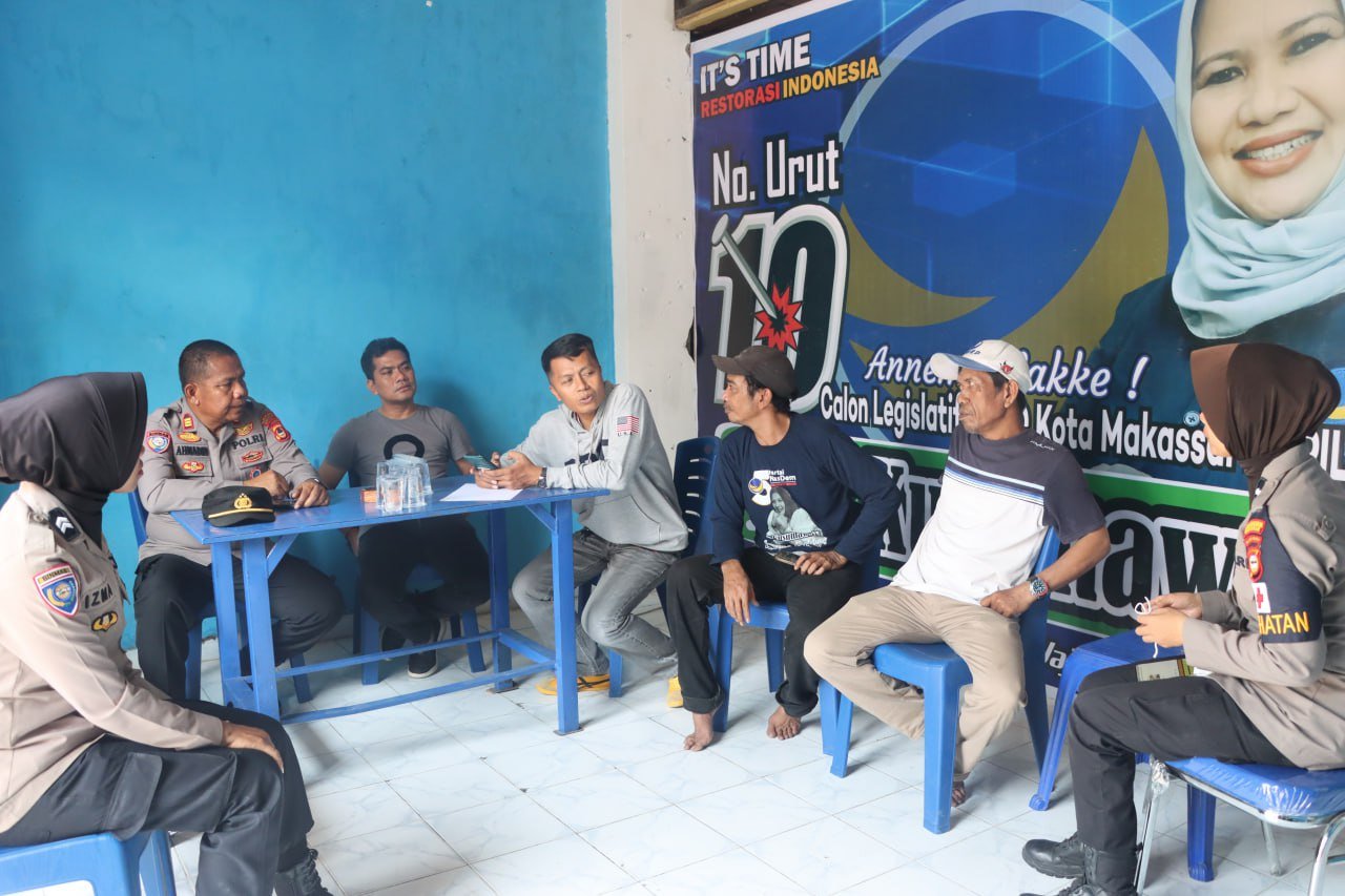 Jajaran Polres Pelabuhan Makassar mengunjungi posko pemenangan masing-masing Caleg yang berada di wilayah hukumnya, Kamis (26/10/2023).