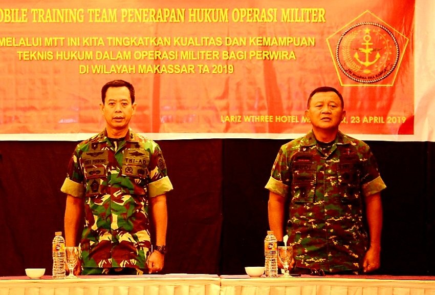 Badan Pembina Hukum (Babinkum) TNI menggelar kegiatan Mobile Training Team (MTT) penerapan Hukum dalam Operasi Militer Tahun Anggaran 2019, yang berlangsung di Hotel La’raz Jln Lagaligo Makassar, Selasa (23/04/2019).