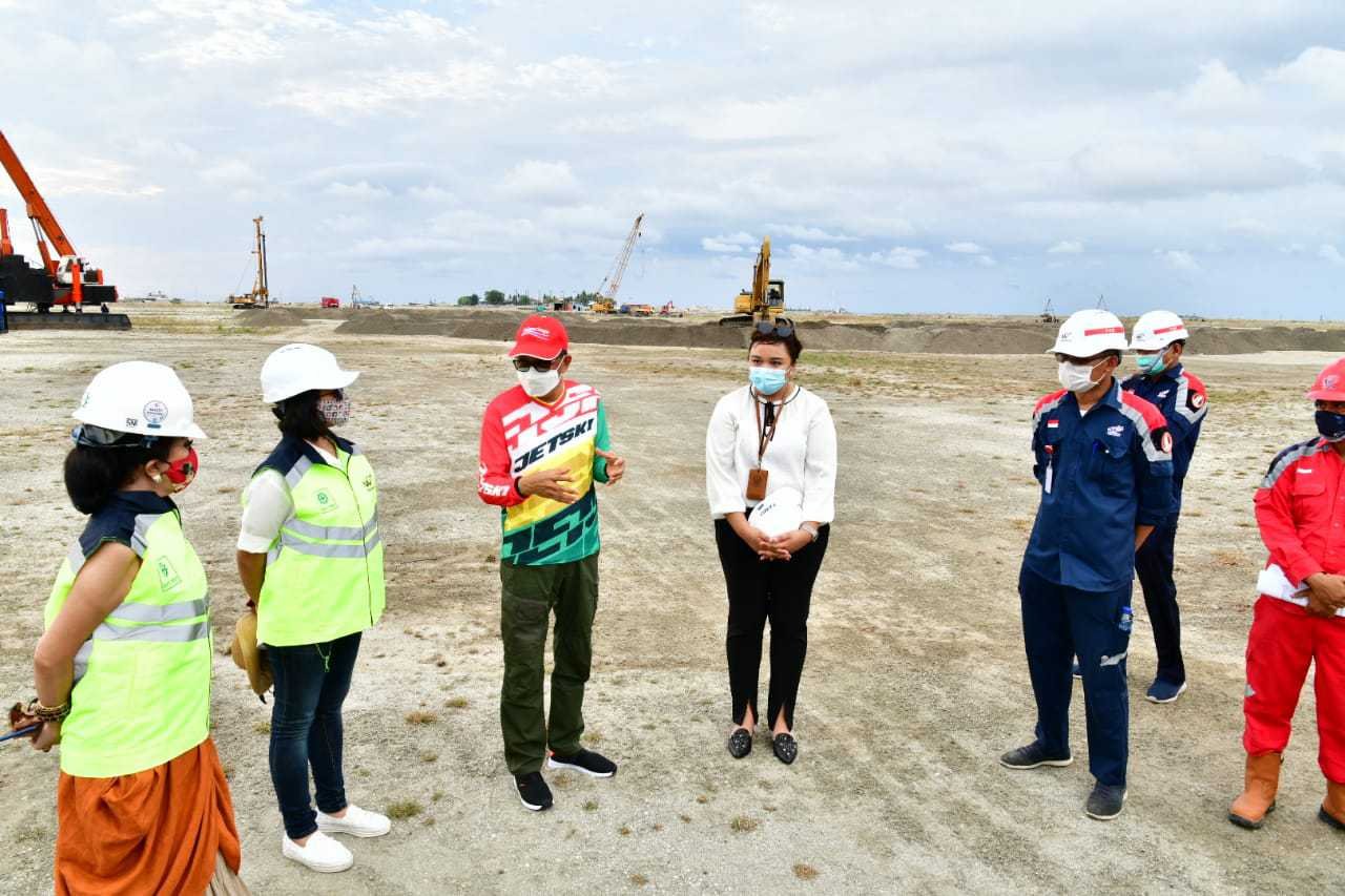 Gubernur Sulawesi Selatan, Prof HM Nurdin Abdullah bersama pimpinan PT. Waskita dan Pj Walikota Makassar, Prof Rudy Djamaluddin, meninjau progres pembangunan Gedung Twin Tower dan pelataran kuliner Lego-lego di kawasan Center Point Of Indonesia (CPI), Kamis (19/11/2020).