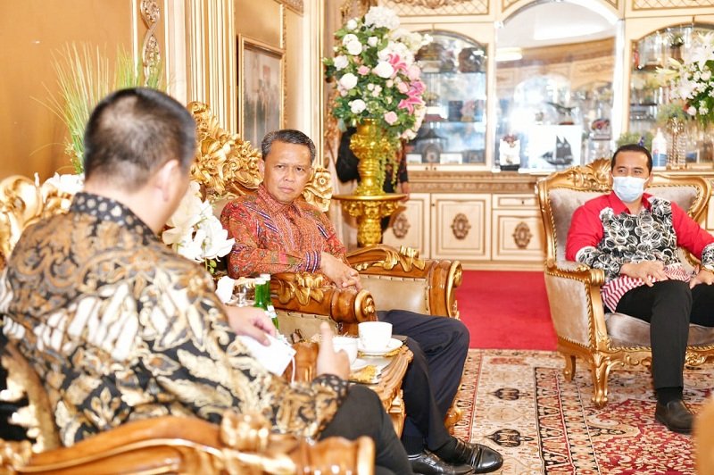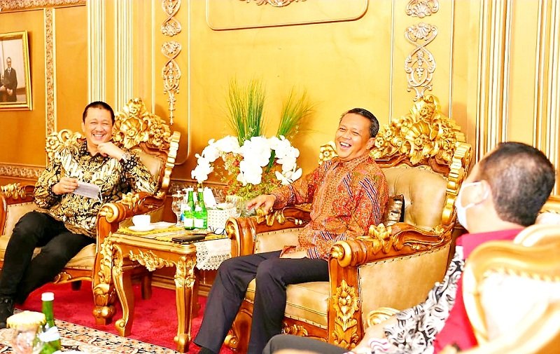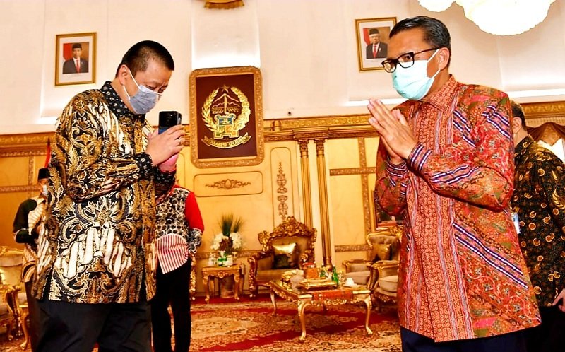 Gubernur Sulawesi Selatan, Prof. HM Nurdin Abdullah usai bertemu dengan Direktur Utama Garuda Indonesia, Irfan Setiaputra di Rumah Jabatan Gubernur Sulsel, Selasa 4 Agustus 2020, menyampaikan hal terkait progres pembangunan Bandara Internasional Toraja Buntu Kunik di Tana Toraja dan juga proyek nasioanal Kereta Api (KA) Makassar - Parepare.