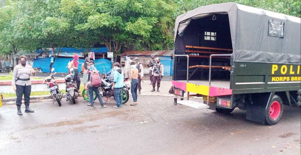 Pelaksanakan patroli gabungan dalam pelaksanaan PSBB mulai dilaksanakan untuk memutus penyebaran mata rantai Covid-19, Minggu (10/05/2020).
