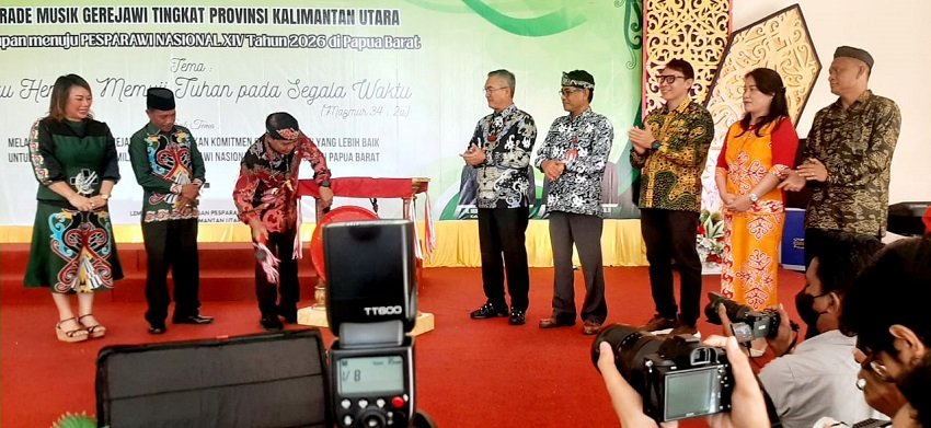 SOROTMAKASSAR - TARAKAN, Ditandai penabuhan gong beberapa kali di atas panggung oleh Gubernur Provinsi Kalimantan Utara (Kaltara), Dr. H. Zainal Arifin Paliwang, SH, M.Hum, hajatan seni rohani bertajuk "Parade Musik Gerejawi Tingkat Provinsi Kaltara" resmi dibuka pada Selasa (25/11/2025) sore, bertempat di Gedung Kristen Center, Jl. Akibala, Kota Tarakan.