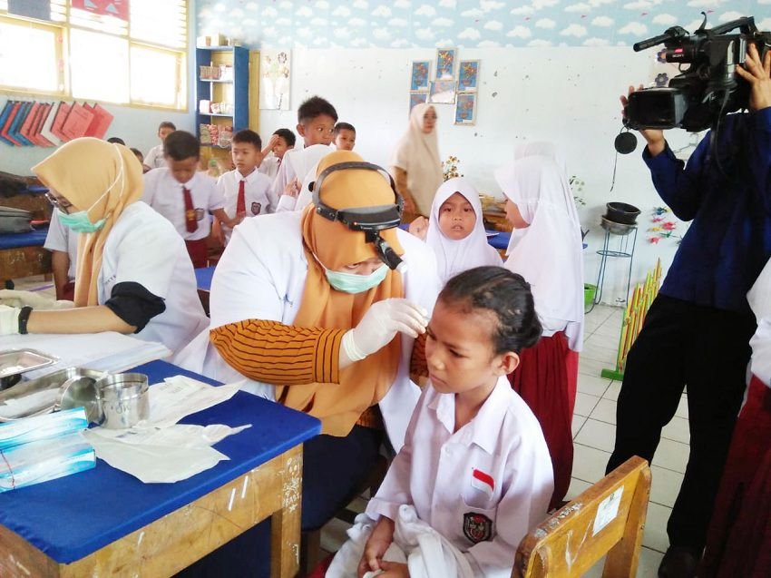 Dalam kesempatan tersebut pihaknya melakukan pemeriksaan telinga dan pembersihan serumen atau kotoran telinga setiap siswa.