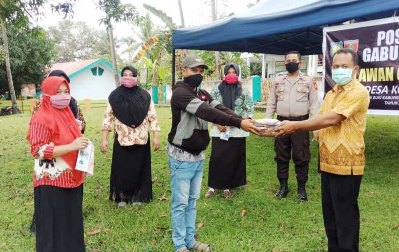 Bhabinkamtibmas Desa Kohala Polsek Polebunging Brigpol Andi Fahmi bersama tim relawan Covid-19 Desa Kohala, Kecamatan Buki, Kabupaten Kepulauan Selayar melaksanakan kegiatan sosial berupa pembagian masker kepada warga masyarakat Desa Kohala serta para pengguna jalan yang melintas di depan Posko, Kamis (16/04/2020) pagi sekitar pukul 10.00 Wita.