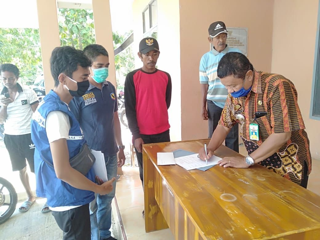 Warga atas nama Pande, Agus, dan Tellu menerima bantuan yang diserahkan langsung Camat Gilireng, Andi Pammusureng, S.Sos di depan Kantor Camat Gilireng.