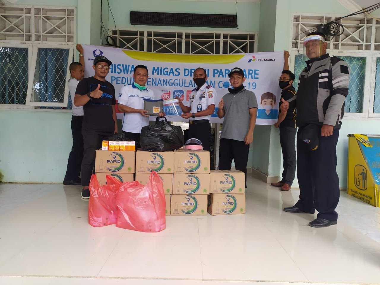 Kepedulian Hiswana Migas DPC II Parepare, sebagaimana aksi sosialnya di Kabupaten Wajo, Rabu (22/4/2020), tidak hanya menyerahkan sembako, juga masker, obat-obatan, dan minuman botol mineral di perbatasan wilayah Kabupaten Wajo.