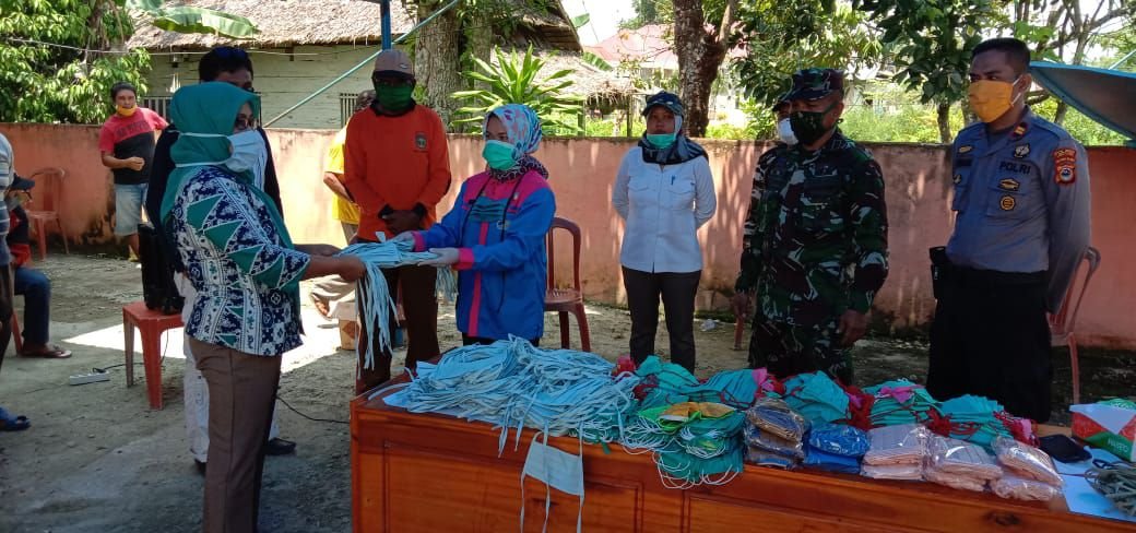 Pembagian masker tersebut sebagai upaya pemerintah Kecamatan dan Puskesmas setempat dalam memerangi wabah virus Corona bersama dengan masyarakat di Desa Terpedo Jaya.