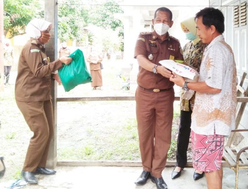 Kejaksaan Negeri (Kejari) Kabupaten Sinjai bersama Ikatan Adhyaksa Dharma Karini menggelar Bakti Sosial (Baksos) dengan membagikan 50 paket sembako kepada masyarakat yang terdampak wabah Corona Virus Desease 2019 (Covid-19), Selasa (28/04/2020).