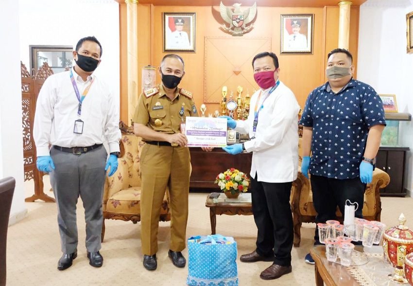 Kantor Cabang Pembantu (KCP) Bank Muamalat Kabupaten Gowa, menyerahkan bantuan paket sembako kepada Pemerintah Kabupaten (Pemkab) Gowa, Senin (08/06/2020).