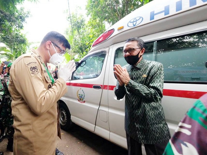 Gubernur Provinsi Sulawesi Selatan, Prof Nurdin Abdullah menyerahkan bantuan ambulance kepada Pemerintah Kabupaten Gowa saat peresmian Kampung Rewako di Desa Julubori, Kecamatan Pallangga, Selasa (16/06/2020).