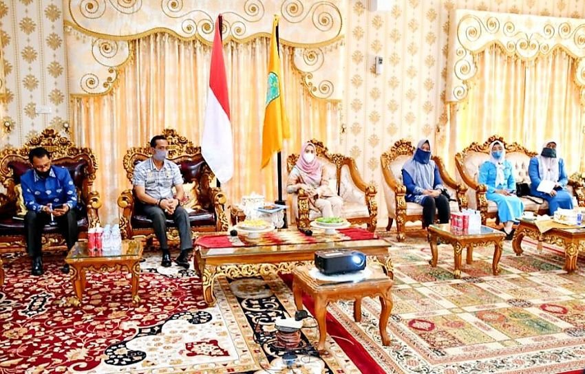 Bunda PAUD Kabupaten Sinjai Hj. A. Nurhilda Daramata Seto mengikuti pertemuan bersama Bunda PAUD Kabupaten/Kota se-Sulawei Selatan melalui media video conference (vidcon).