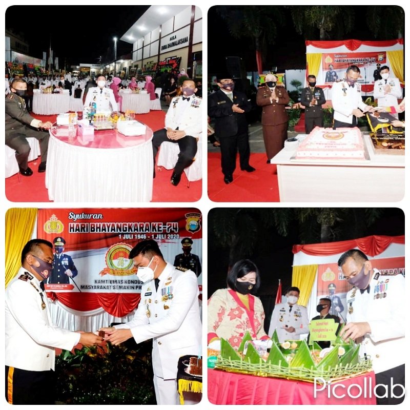 Tampak terlihat acara syukuran peringatan Hari Bhayangkara ke-74 dikemas sangat sederhana dan mengedepankan protokol kesehatan.