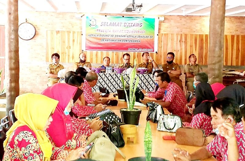 Hal ini disampaikannya melalui Pelaksana Tugas Kepala Seksi Pembinaan Kesiswaan Muh. Suaib, SH yang mendampingi Kabid Pendidikan SD pada rapat koordinasi Kepala Sekolah yang dipandu langsung oleh Korwil Bontoramba Alpian Munir, S.Pd, MM bertempat di Balai Pertemuan Paranga, Kecamatan Bontoramba, Selasa (07/07/2020).