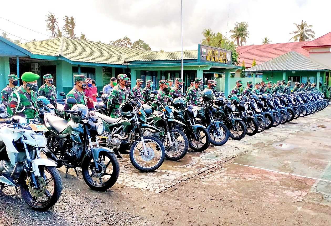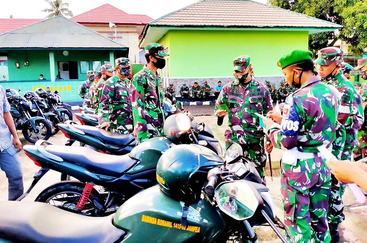 Dandim Letkol Yuwono didampingi para perwira Kodim 1415 memeriksa langsung Randis sebanyak 57 Randis roda dua (Motor) dan 7 unit Randis roda empat (Mobil).