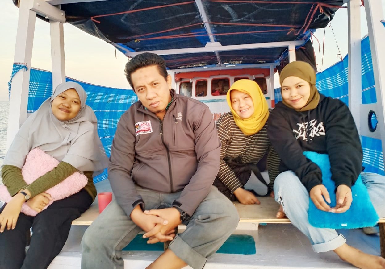 Terbukti, sejak awal perjalanan yang dimulai pada Jum'at (26/06/2020) sampai kembali Selasa (30/06/2020), ketiganya konsisten menempati bagian geladak kapal dan tak sedikitpun bergeming, meski wajah mereka harus sesekali 'ditampar' oleh percikan badai gelombang laut. (Andi Fadly)