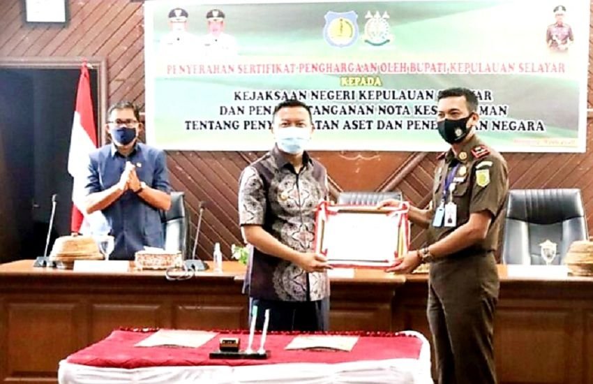 Penghargaan ini diterima langsung oleh Kajari Kepulauan Selayar Adi Nuryadin Sucipto, SH, MH di Ruang Rapat Pimpinan Kantor Bupati Kabupaten Kepulauan Selayar, Kamis (09/07/2020).
