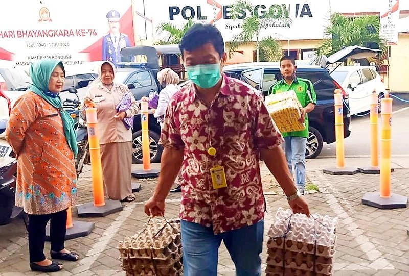 Sebanyak 120 rak telur, Mega Mie 15 ball, dan sebanyak 6 karung beras (@25 kg) diserahkan langsung Kepala Badan Pertanahan Negara (BPN) Gowa untuk kepentingan logistik dapur umum TNI-Polri.