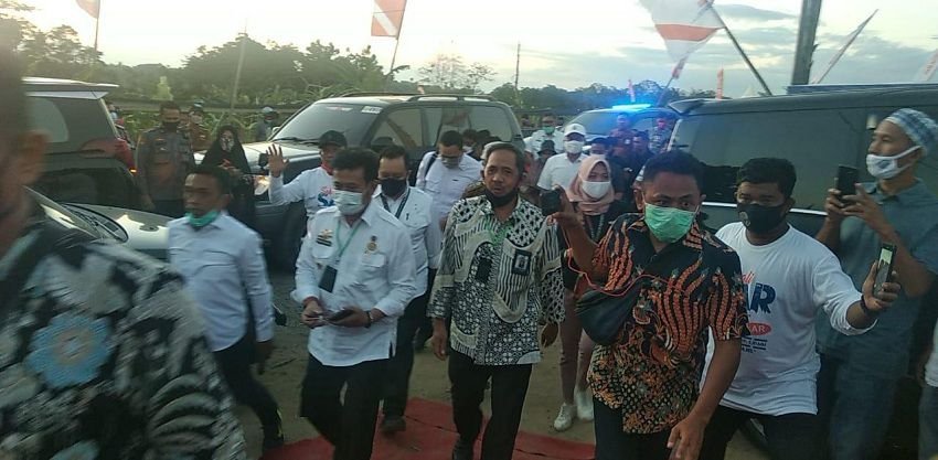 Menteri Pertanian RI, Syahrul Yasin Limpo (SYL) bersama rombongan, termasuk Rektor Unismuh Makassar, Prof. Dr. H. Abd Rahman Rahim, SE, MM, yang turut mendampingi, dalam kunjungan kerjanya ke Sidrap, melakukan panen raya porang dan evaluasi realisasi KUR Petani, Selasa (28/07/2020) tadi.