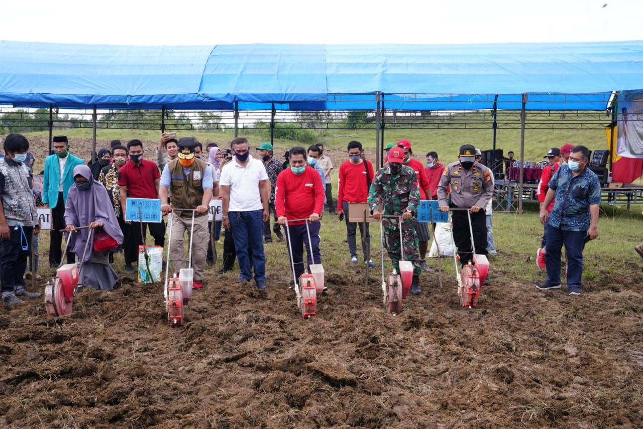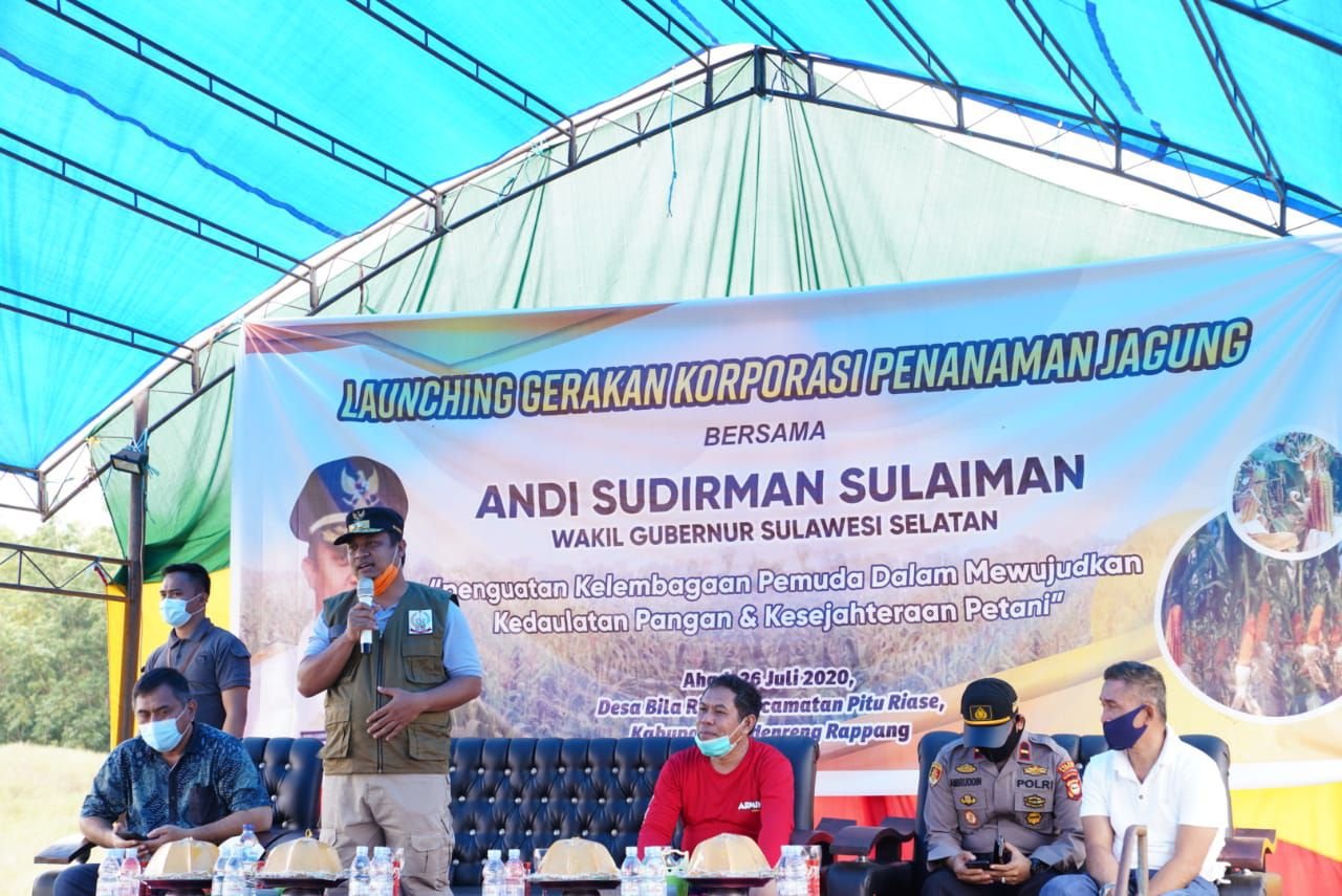 Wakil Gubernur Sulsel Andi Sudirman Sulaiman, menghadiri launching Gerakan Korporasi Penanaman Jagung, Minggu (26/7/2020). Penanaman jagung dilaksanakan di Desa Bila Riase, Kecamatan Pitu Riase, Kabupaten Sidrap, dengan tema Penguatan Kelembagaan Pemuda dalam Mewujudkan Kedaulatan Pangan dan Kesejahteraan Petani.