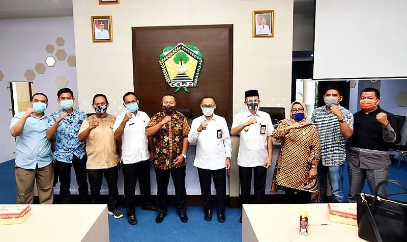 Sekretaris Daerah Sekda Kabupaten Gowa, H. Muchlis didampingi Kepala Dinas Sosial Kabupaten Gowa Syamsuddin Bidol menerima kunjungan Dewan Perwakilan Rakyat Daerah (DPRD) Kabupaten Sidrap di Baruga Karaeng Pattingalloang, Rabu (29/07/2020).